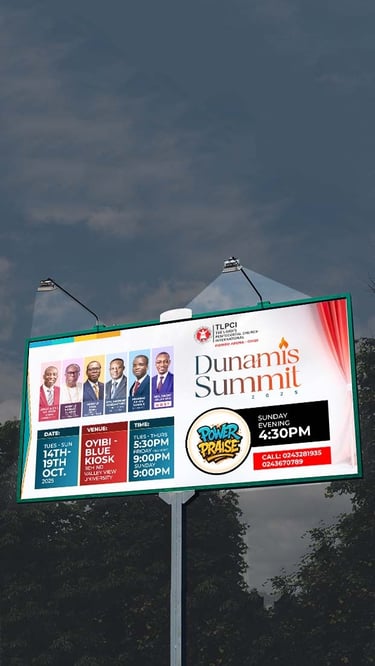 This project involved the complete creative execution of the Dunamis Summit and Power Praise event. I was responsible for the design and production of all event materials, from concept development through to final delivery. This included flyers, banners, stage branding, social media assets, and other event collateral.