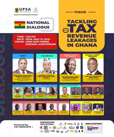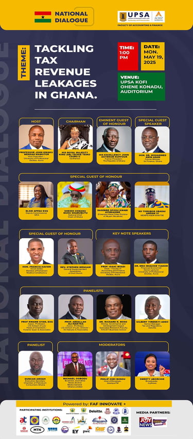 This project involved the full creative execution of the National Dialogue organized by UPSA’s Faculty of Accounting and Finance. I handled the design and production of all event materials, from concept development to final delivery. This included event books, flyers, banners, stage branding, and other collateral.