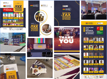 My focus was on creating a professional and cohesive visual identity that aligned with the event’s theme of “Tackling Tax Revenue Leakages in Ghana.” Every piece was designed with clarity, impact, and consistency to communicate the importance of the dialogue and engage both participants and stakeholders.